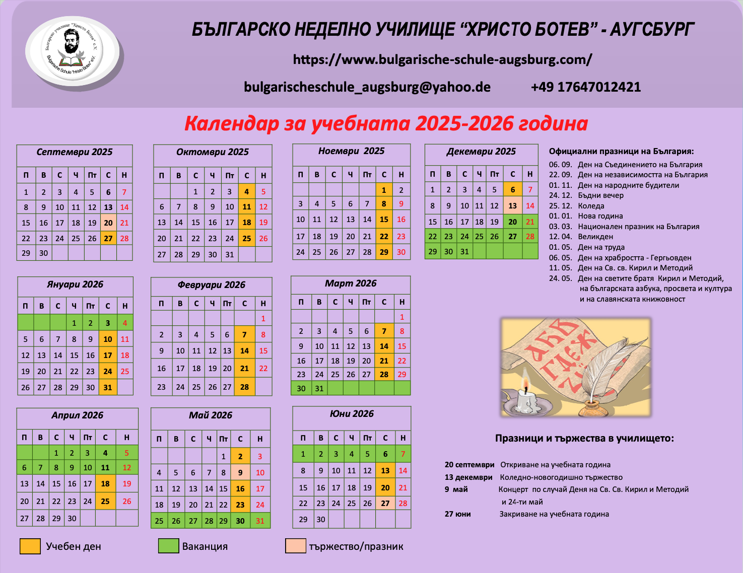 Für die Aufnahme an der Bulgarischen Sonntagsschule sollen die folgenden Bedingungen erfüllt werden: